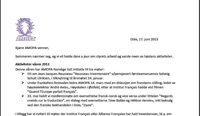 Une importante réunion de travail sur le site Pour le français a eu lieu à Oslo les 13 et 14 décembre 2013 (Claude Anttila, Jean-Louis Tarrou, Rolf Tobiassen, Turid Henriksen et Svein Johansen). Le site a été refondu et enrichi. Voir: http://pourlefrancais.wordpress.com