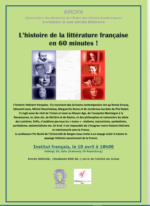 100-årsjubileet til den norske seksjonen ved lycée Corneille i Rouen blir offisielt markert i Rouen med ulike arrangementer i september. Fra vår side vil vi markere jubileet ved å presentere historien om dette unike fransk-norske utdanningssamarbeidet fra dag én fram til i dag. Lektor Nils Lindgren vil gjøre dette. Han er medforfatter av en ny jubileumsbok, og har funnet spennende stoff under arbeidet med denne. Boken vil bli tilgjengelig på møtet. Presentasjonen blir på fransk.